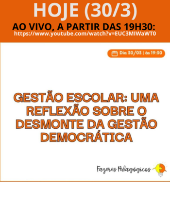 É HOJE (30/3) LIVE: “GESTÃO ESCOLAR: UMA …