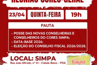 Na próxima quinta-feira (23/04), às 19h, tem reunião do CORES…