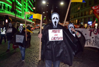 Mensagem “# FORA MARCHEZAN” sobrevoa Porto …