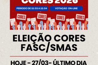 ÚLTIMO DIA PARA INSCRIÇÕES PRESENCIAIS NAS ELEIÇÕES DO CORES FASC/SMAS É HOJE (27/03)