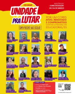 A Comissão Eleitoral divulgou a relação das candidatas e candidatos homologados, no dia 17 de março, que concorrem às vagas no CORES Educação.
