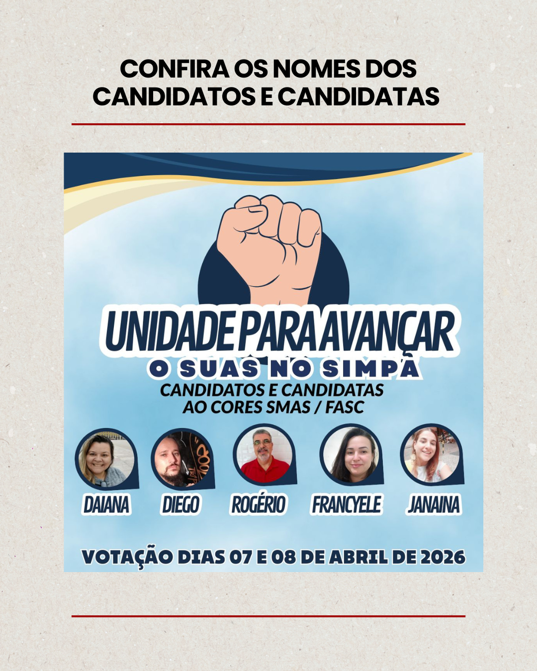 A votação é um momento fundamental de participação democrática da categoria, garantindo que os/as trabalhadores/as da FASC/SMAS elejam seus representantes para o próximo período.