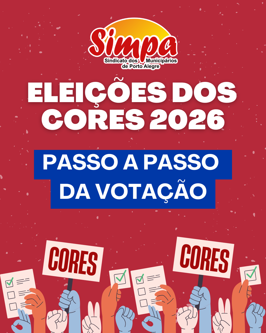 O Sindicato dos Municipários de Porto Alegre (Simpa) está realizando a eleição do CORES FASC/SMAS, nesta terça e quarta, dias 7 e 8 de abril, das 8h às 20h, em formato totalmente online.