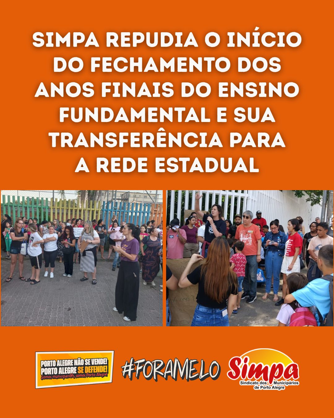 O Sindicato dos Municipários de Porto Alegre (Simpa) repudia o início do fechamento das turmas de sextos anos das escolas da rede municipal e sua transferência para a rede estadual. Essa medida, anunciada pela Prefeitura, representa mais um passo no desmonte da educação pública municipal e um grave prejuízo para as comunidades escolares. Na quinta-feira […]