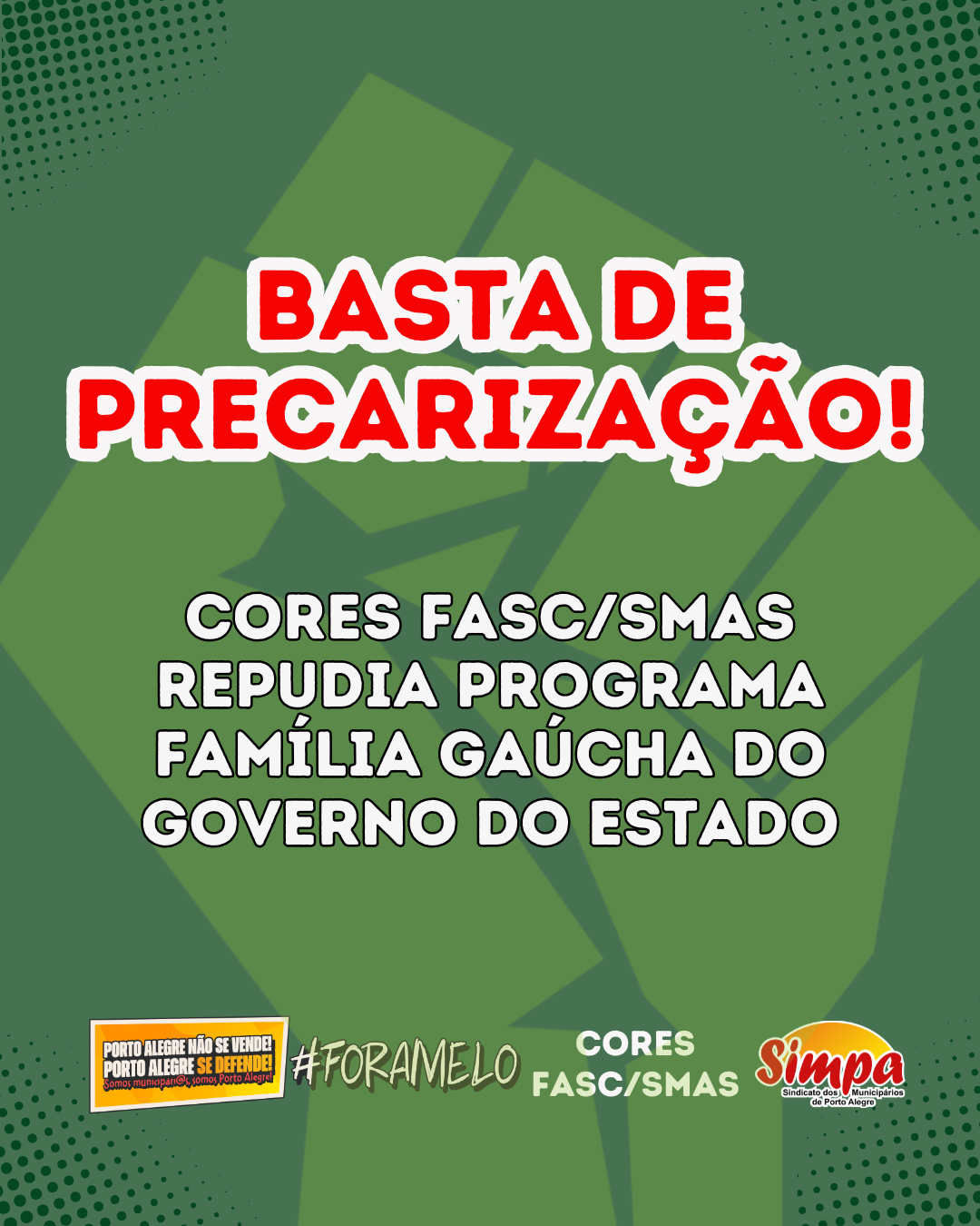 O CORES FASC/SMAS, vem a público manifestar profundo repúdio ao Programa Família Gaúcha (PFG), lançado pela Secretaria de Desenvolvimento Social do Estado do Rio Grande do Sul (SEDES/RS) em 15 de agosto de 2025, financiado pelo Fundo do Plano Rio Grande (FUNRIGS). Tal fundo recebeu mais de R$ 11 bilhões de reais para demandas decorrentes […]