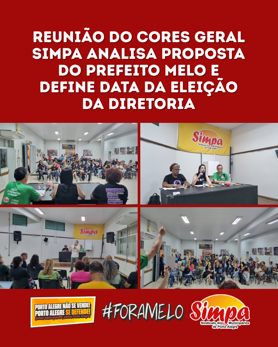 Em reunião na quinta-feira à noite (23/10), o Cores Geral avaliou a proposta apresentada pelo prefeito Sebastião Melo, em relação às pendências que permanecem desde o fim da greve de abril; e deliberou sobre a data da eleição da diretoria para os três anos de gestão (2025 a 2028). O Cores considerou a proposta do […]