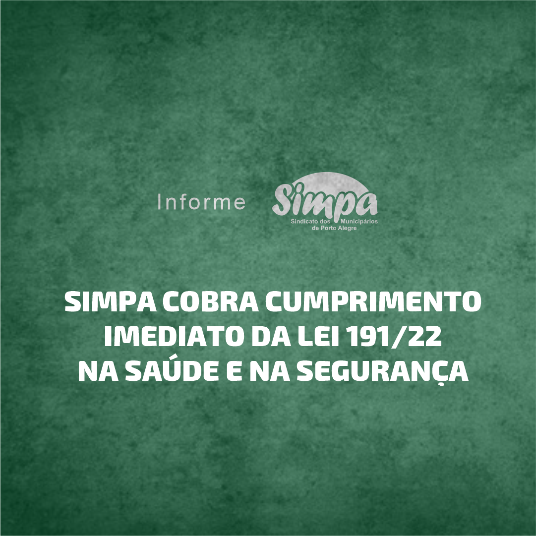 O Simpa protocolou nesta sexta-feira (20), na Prefeitura, ofício endereçado ao secretário municipal de Administração e Patrimônio, André Barbosa, no qual pede providências para a aplicação imediata da Lei 191/2022, que suspende os efeitos da Lei Complementar 173/20 para os servidores da saúde e da segurança, garantindo a estes a contagem de período aquisitivo para […]