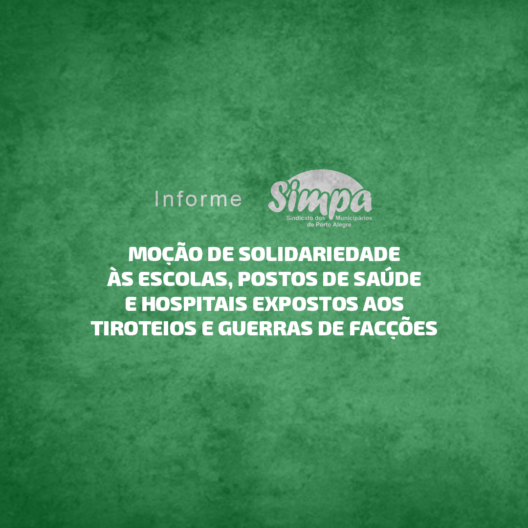 Foi proposta e aprovada por unanimidade, na Assembleia Geral da Categoria Municipária, realizada em 29 de março, às 19h, na Quadra da E.S. Imperadores do Samba, a seguinte moção: Moção de solidariedade às escolas, postos de saúde e hospitais expostos aos tiroteios e guerras de facções. Exigência de apoio e medidas dos governos municipal […]
