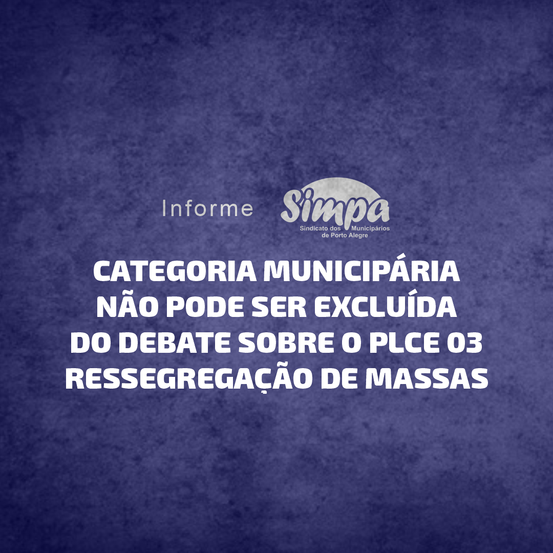 A direção do Simpa acompanhou, durante toda a tarde dessa segunda-feira (28/3), a sessão plenária da Câmara Municipal, na tentativa de evitar a votação do Projeto de Lei Complementar do Executivo (PLCE) 03/2022, que institui a ressegregação de massas no regime previdenciário dos municipários de Porto Alegre. O PLCE 03 não foi a votação […]