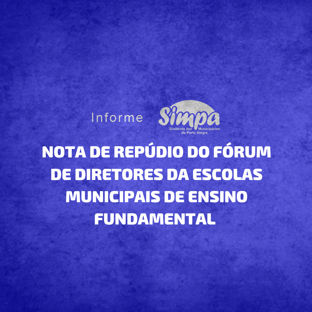 O Simpa apoia e reproduz abaixo manifestação de repúdio do Fórum de Diretores da Escolas Municipais de Ensino Fundamental de Porto Alegre com relação à justificativa apresentada pela prefeitura para o atraso no pagamento das rescisões dos funcionários. Leia a íntegra: O Fórum de Diretores da Escolas Municipais de Ensino Fundamental de Porto […]