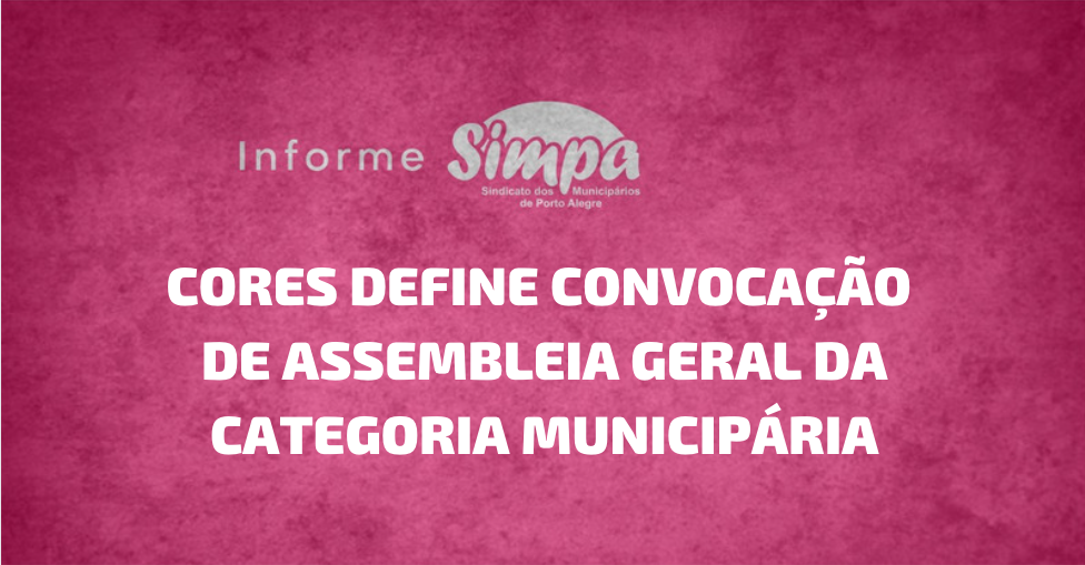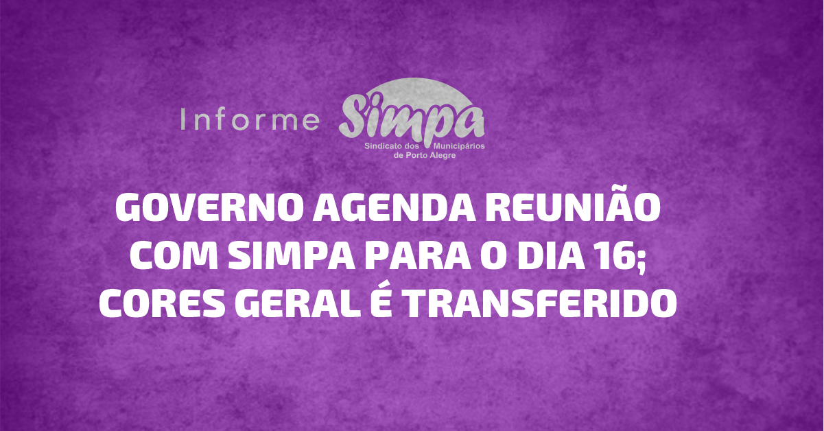 A direção do Simpa informa que em virtude do agendamento, por parte do governo Melo, de reunião com o sindicato na quarta-feira (16), às 10h30, o Cores Geral, que estava marcado para a noite desta segunda-feira (14), foi transferido. A reunião tratará da proposta a ser apresentada pela prefeitura relativa à reposição inflacionária da […]