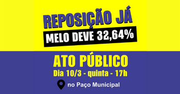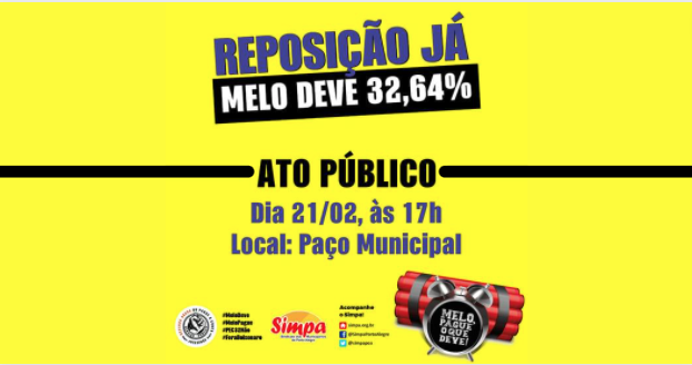 O Simpa chama os municipários e municipárias a ocuparem novamente o Paço Municipal no dia 10/03, a partir das 17h, para pressionar o prefeito Sebastião Melo pela reposição salarial das perdas inflacionárias. Em mais de cinco anos sem a correção, os prejuízos já chegam a 32,64%. Além da reposição, a categoria luta pela atualização […]