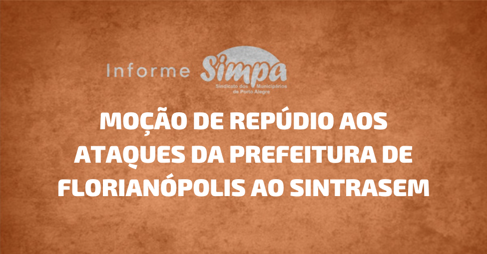 O Sindicato dos Municipários de Porto Alegre (Simpa) repudia, por meio desta moção, os ataques, por parte da Prefeitura de Florianópolis, ao Sindicato dos Trabalhadores no Serviço Público Municipal de Florianópolis (Sintrasem) e manifesta total apoio à entidade e aos companheiros e companheiras perseguidos. Nos últimos anos, o fortalecimento da corrente ultraliberal no plano […]