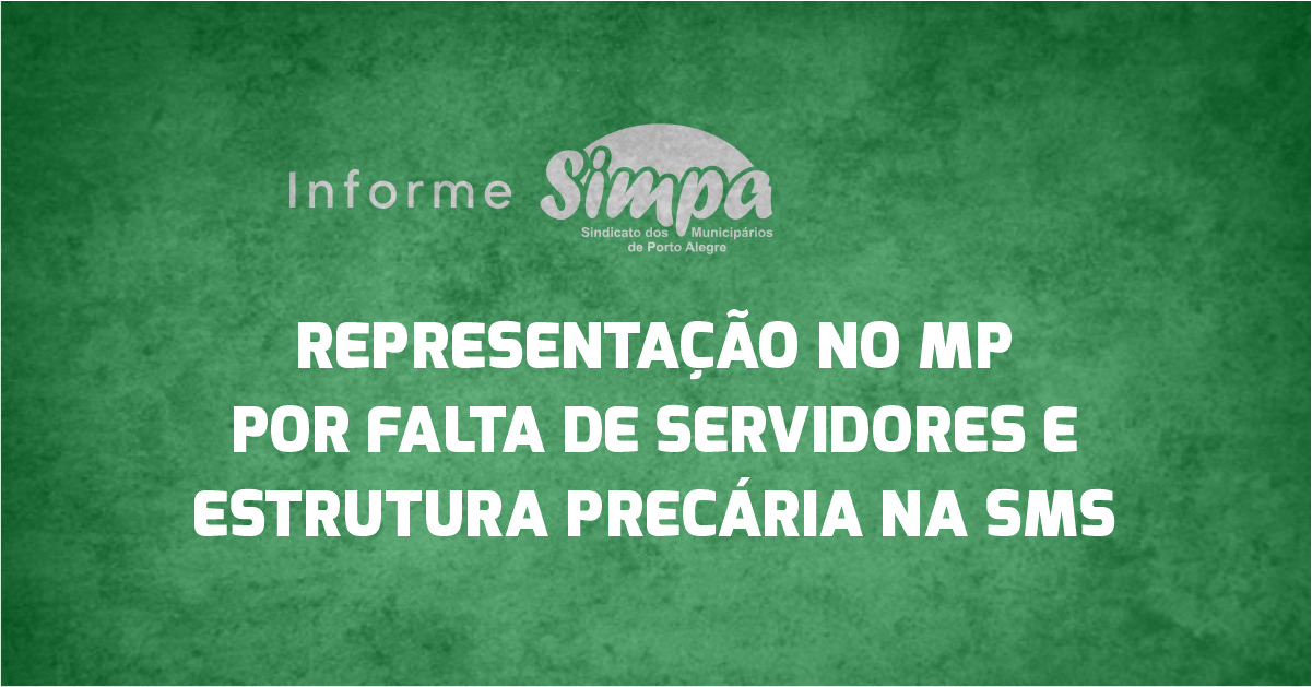 A direção do Simpa ingressou, nessa terça-feira (25/1), com representação na Promotoria de Justiça de Direitos Humanos do Ministério Público RS (MP/RS), para que sejam instaurados procedimentos administrativos cautelares em relação à falta de servidores e a precária estrutura na rede municipal de saúde de Porto Alegre. Diversos equipamentos da rede municipal agonizam com […]