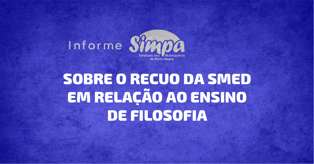 Com relação à manutenção do ensino de Filosofia na grade curricular da Rede Municipal de Ensino (RME) – decisão tomada pela Secretaria Municipal de Educação (Smed) após reunião entre a secretária Janaína Audino, a deputada estadual Sofia Cavedon (PT) e uma comissão de representantes das direções escolares e oficialmente confirmada pela Prefeitura nesta sexta-feira (26) […]
