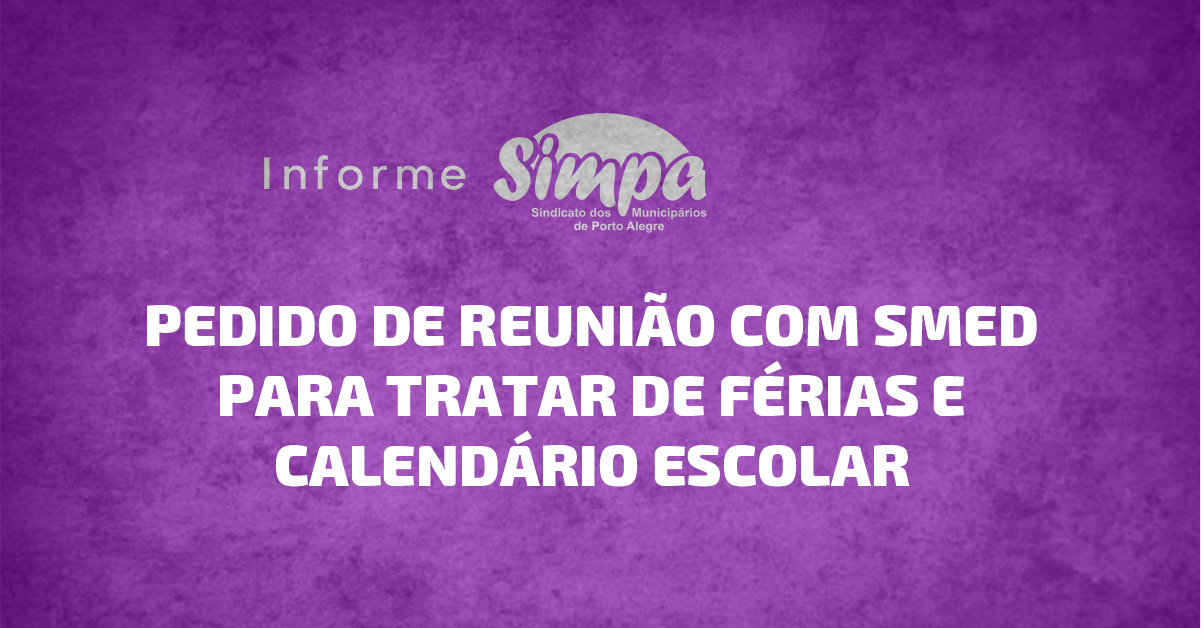 Nesta terça-feira (7), o Simpa, o Cores Educação e a Atempa protocolaram ofícios na Secretaria Municipal de Educação (Smed) e na Prefeitura solicitando, com urgência, retorno sobre o agendamento de reunião com a secretária Janaína Audino e assessorias para tratar das férias dos trabalhadores e trabalhadoras da educação e do calendário escolar. O pedido de […]