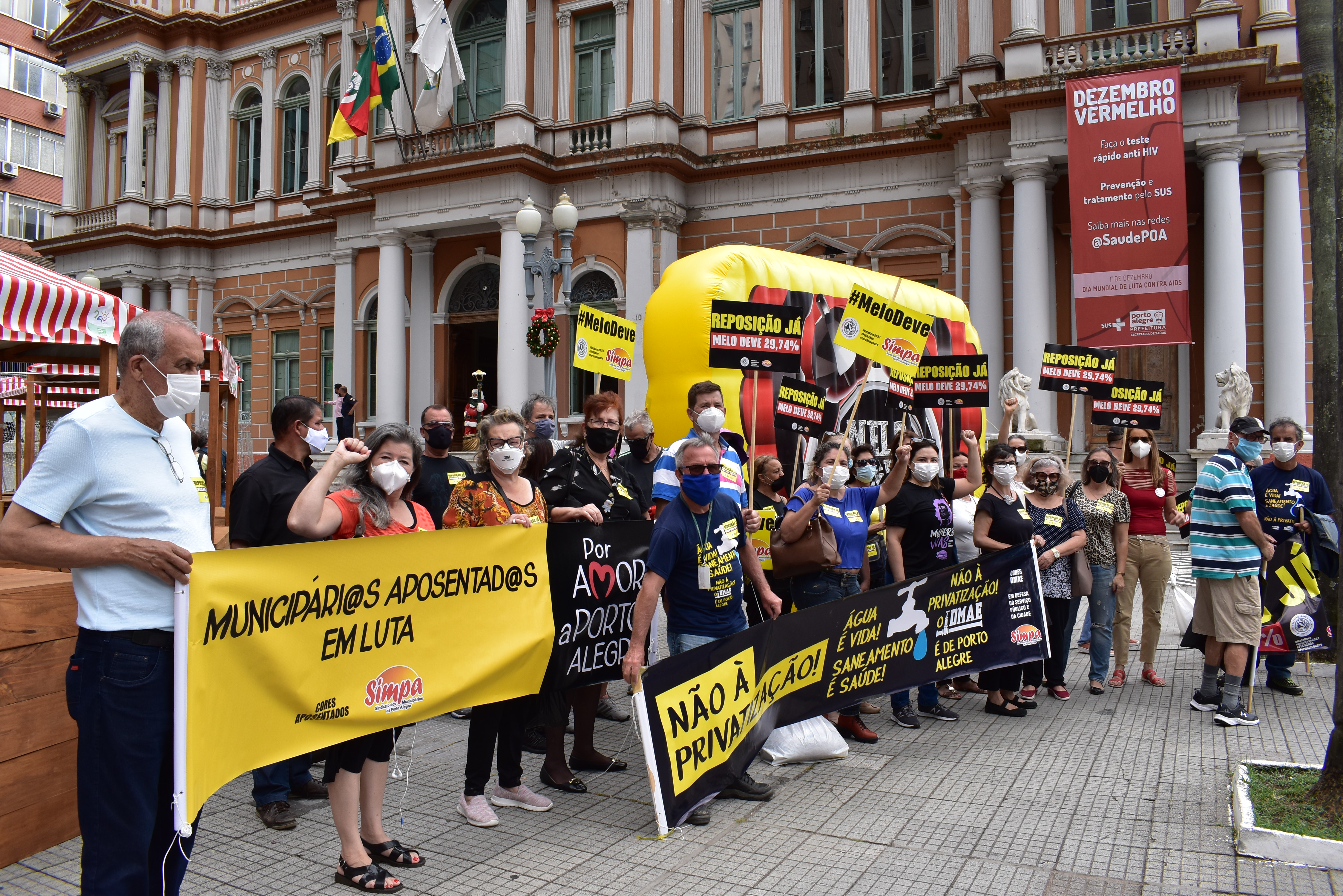 Servidoras e servidores municipais, da ativa e aposentados, realizaram novo protesto na tarde desta segunda-feira (6) em frente à Prefeitura de Porto Alegre para reivindicar a reposição salarial de 29,74%. O índice resulta do acumulado dos últimos cinco anos e meio (66 meses) em que a categoria não teve a correção inflacionária estabelecida em lei. […]