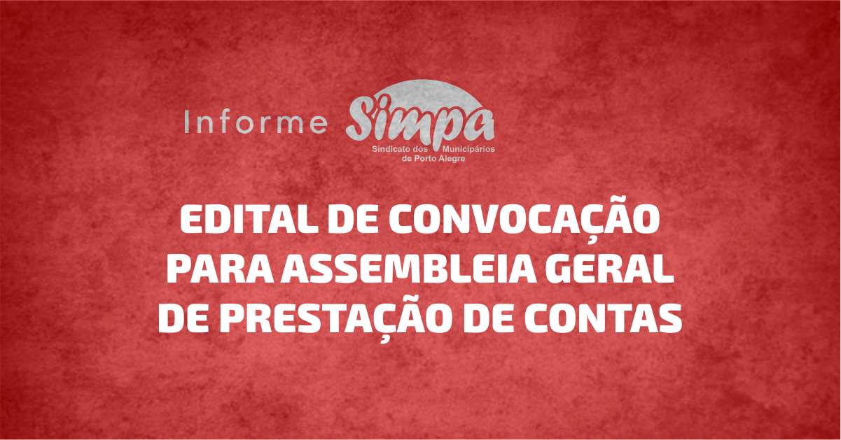 O Simpa realizou, na noite desta segunda-feira (8), de maneira virtual, assembleia geral ordinária na qual foi apreciada e aprovada, por unanimidade, a prestação de contas do sindicato no período de 1º de abril a 30 de setembro de 2021. A assembleia foi precedida de reunião do Conselho de Representantes Sindicais (Cores), ao qual as […]