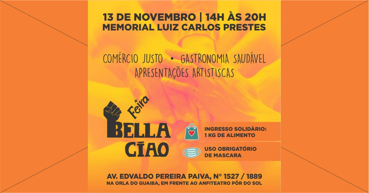 No próximo dia 13 de novembro, sábado, acontece a Feira Bella Ciao, no Memorial Luiz Carlos Prestes (Avenida Edvaldo Pereira Paiva, 1527), das 14h às 20h. O evento é uma iniciativa do grupo Esquerda Compra de Esquerda, criado nas redes sociais e pelo qual são oferecidos diversos produtos e serviços feitos por militantes deste campo […]