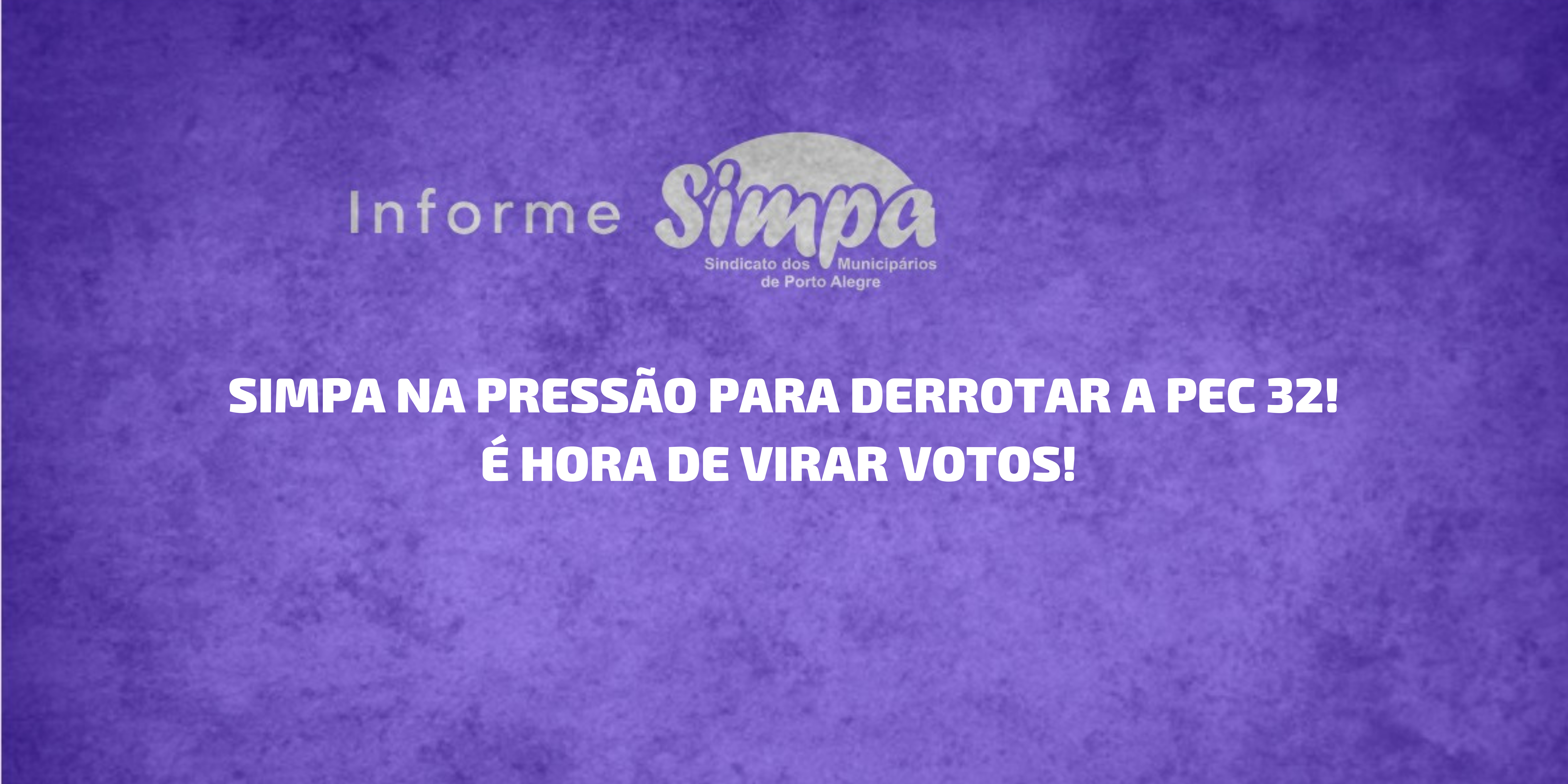 O Sindicato dos Municipários de Porto Alegre (Simpa) atua conjuntamente com as 33 entidades da Frente dos Servidores Públicos do Rio Grande do Sul (FSP) para pressionar os deputados gaúchos a não votarem na PEC 32 (reforma administrativa), que foi aprovada, no último dia 23, pela comissão especial da Câmara de Vereadores e pode ir […]