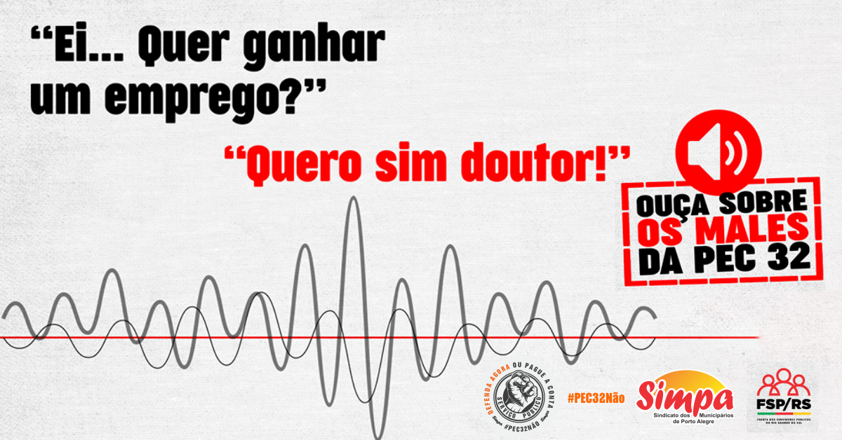 Uma nova campanha em defesa do serviço público e contra a reforma administrativa (PEC 32/2020) entrou no ar ontem, 14/9. O Simpa e mais de 33 entidades representando servidores e servidoras municipais, estaduais e federais de todo o Rio Grande do Sul uniram-se para fazer a divulgação nas rádios Guaíba, Grenal e em mais 35 […]