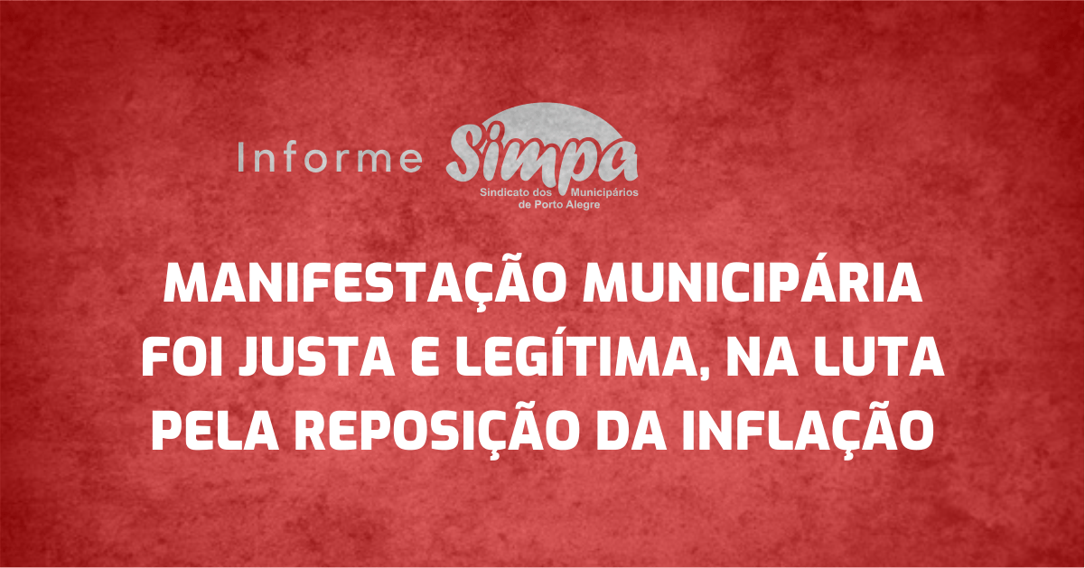 A direção do Simpa encaminhou pedido de correção à colunista, após publicação críticas infundadas em seu espaço no jornal Zero Hora, referentes ao protesto em defesa da reposição da inflação, realizado pela categoria municipária, no último domingo, na Redenção, durante a abertura da programação dos 250 anos de Porto Alegre. Leia abaixo a nota do […]