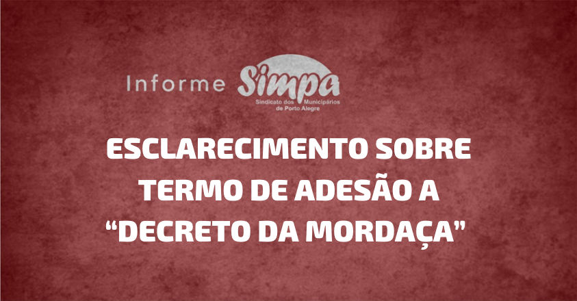 Com relação ao Decreto Municipal 21.071/2021, que institui o Código de Ética, de Conduta e de Integridade dos Agentes Públicos e da Alta Administração do Município de Porto Alegre, o Simpa esclarece que, conforme decisão tomada coletivamente em assembleia da categoria, realizada no dia 13 de agosto, a orientação do sindicato é a de que […]