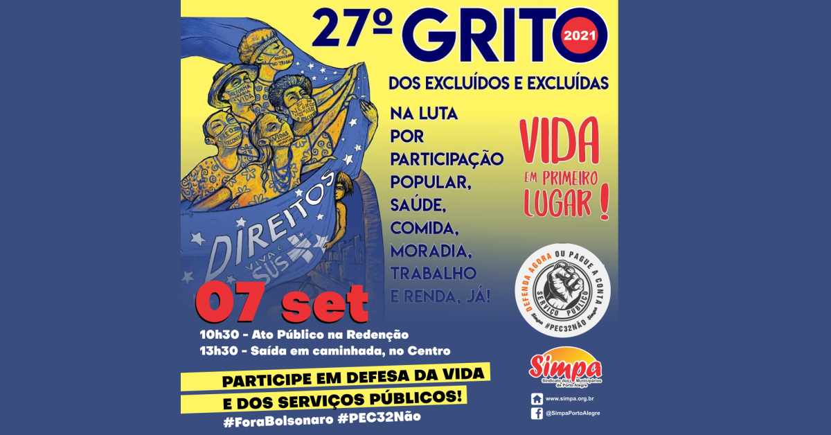 No próximo dia 7 de setembro, o Simpa estará mobilizado para as atividades do Grito dos Excluídos, junto com a Frente dos Serviços Públicos (FSP) e as centrais sindicais, em defesa da vida e pelo “Fora Bolsonaro”. O sindicato chama a categoria a se somar a essas manifestações a fim de fazer frente aos […]