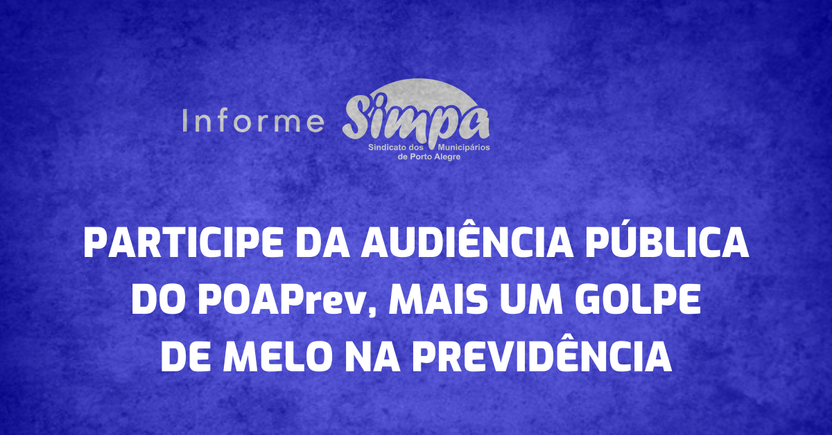 Menos de 100 pessoas participaram, na noite dessa quinta-feira (2/9), da audiência pública que debateu o Projeto de Lei Complementar do Executivo – PLCE 09/21. A proposição retoma a Lei 839/2018, do ex-prefeito Marchezan, que criou o fundo de previdência complementar POAPrev, com o objetivo de alterar o gestor do fundo. O Simpa considera […]