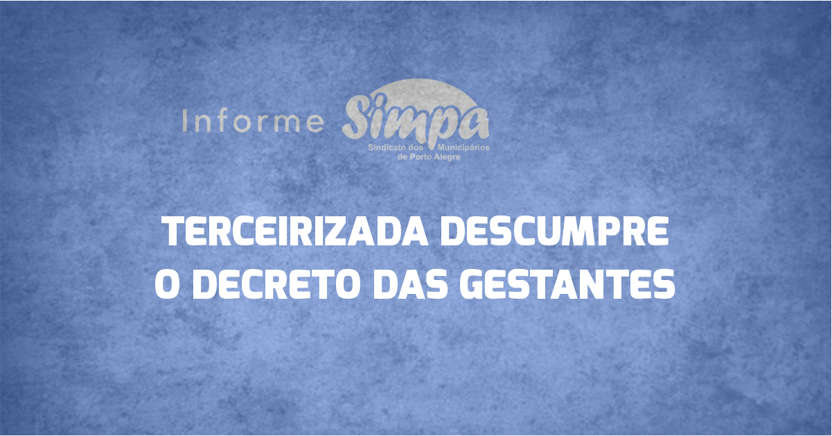 O Simpa encaminhou ofício à Secretaria Municipal de Saúde de Porto Alegre (SMS), na quarta-feira (08/9), denunciando a empresa terceirizada Orbenk, que estava mantendo trabalhadoras gestantes em trabalho presencial, descumprindo o Decreto Municipal nº 21.131/21. A empresa presta serviço no Laboratório Central do Pronto Atendimento Cruzeiro do Sul. Foi solicitado que a SMS notificasse […]