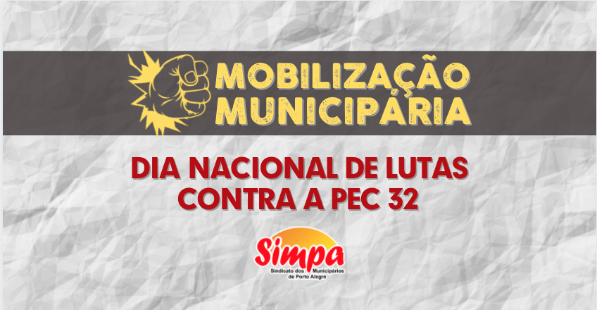No próximo dia 18 de agosto, Dia Nacional de Luta Contra a Reforma Administrativa, a categoria municipária de Porto Alegre estará nas ruas para denunciar à população a completa destruição dos serviços públicos proposta pelo governo Bolsonaro com a PEC 32 (Proposta de Emenda Constitucional). Em Assembleia Geral on-line, realizada pelo Simpa na noite dessa […]