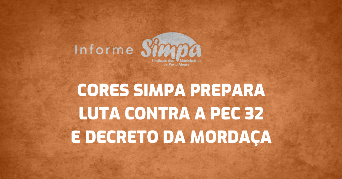 Está marcado para 18 de agosto o Dia Nacional de Lutas contra a PEC 32 (reforma administrativa). Vamos nos organizar para participar deste dia e para outras ações de luta contra os ataques aos serviços públicos e aos servidores. Para isso, a direção do Simpa sugere que os Cores realizem reuniões com essa pauta […]