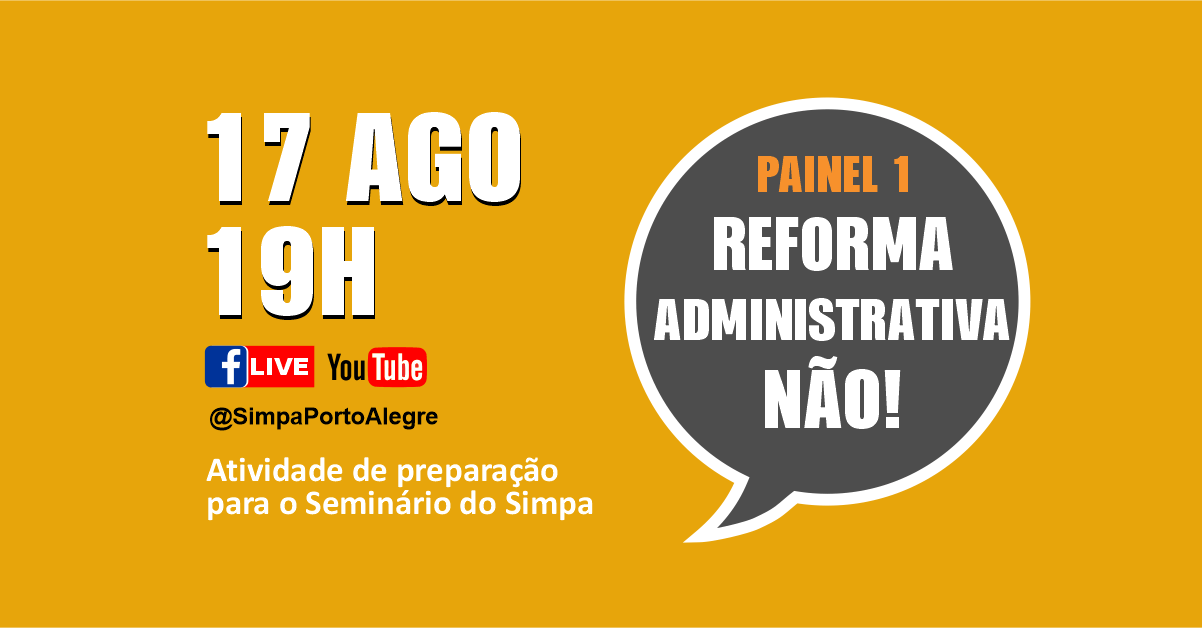 O Simpa realiza, no dia 17 de agosto, a partir das 19h, painel on line “Reforma Administrativa Não”, com transmissão ao vivo pelo Youtube e Facebook do Simpa (@SimpaPortoAlegre). O evento tratará da Proposta de Emenda à Constituição (PEC) 32 e terá palestras de José Celso Pereira Cardoso Júnior, doutor em Economia pelo IE-Unicamp […]