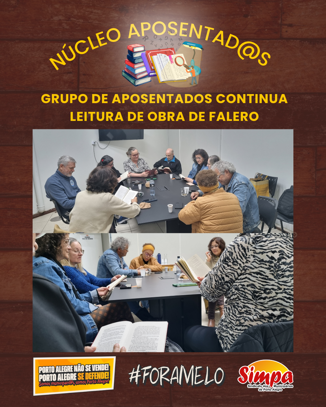 O segundo encontro do Grupo de Leitura, do Núcleo dos Aposentados, ocorreu na última quinta-feira (04/09), na sede do Simpa. Na ocasião, foram lidos dois contos do livro Vila Sapo, de José Falero: “Atotô” e “O episódio do bodoque”. O Grupo de Leitura dará sequência à obra no próximo encontro, que será realizado no dia […]