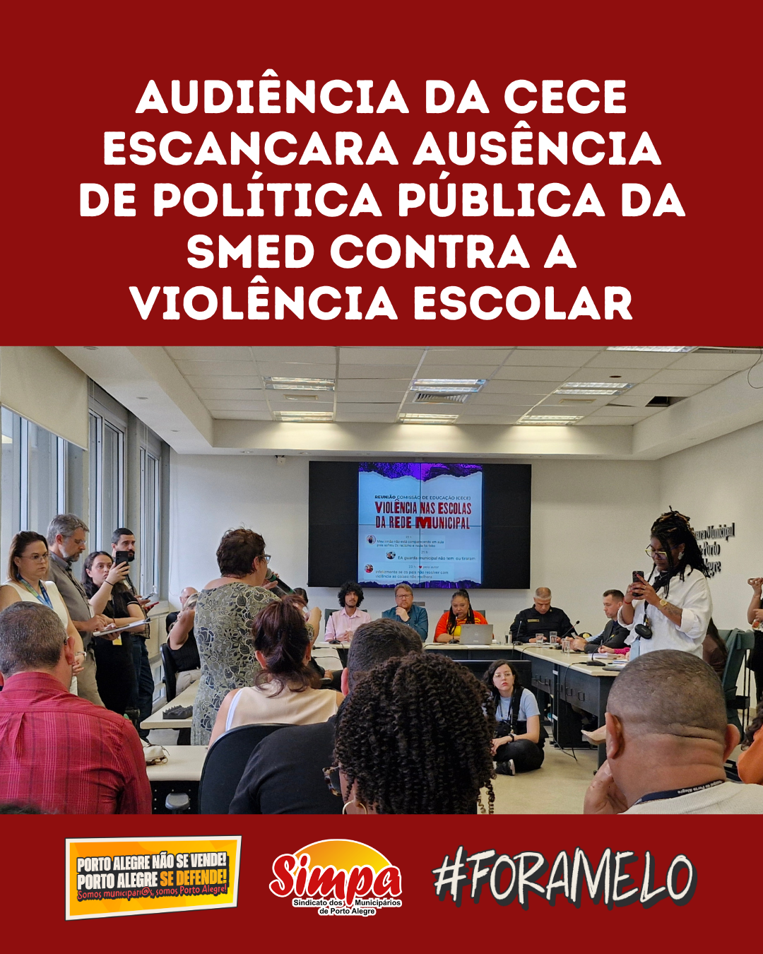 O Simpa participou, na tarde desta terça-feira (02/09), da audiência pública promovida pela Comissão de Educação, Cultura, Esporte e Juventude (CECE) da Câmara Municipal, que debateu os casos de violência nas escolas de Porto Alegre. O encontro contou também com a participação da Atempa, MP-RS, DPE-RS, Conselho Municipal de Educação, Conselho Tutelar, representantes da SMED, […]