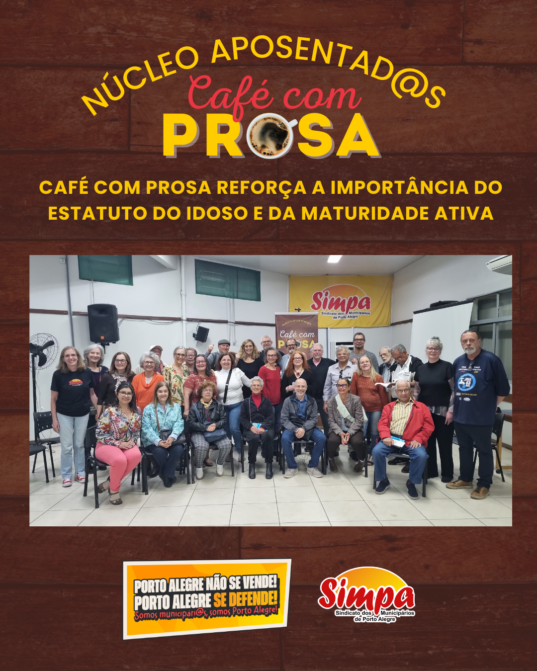 Na última sexta-feira (29/08), o Núcleo dos Aposentados do Simpa realizou mais uma edição do Café com Prosa, que reuniu cerca de 40 participantes em um encontro de diálogo, aprendizado e troca de experiências. O debate contou com a presença da cientista social Neusa Pivatto, ex-coordenadora de Políticas de Direitos da Pessoa Idosa do Ministério […]