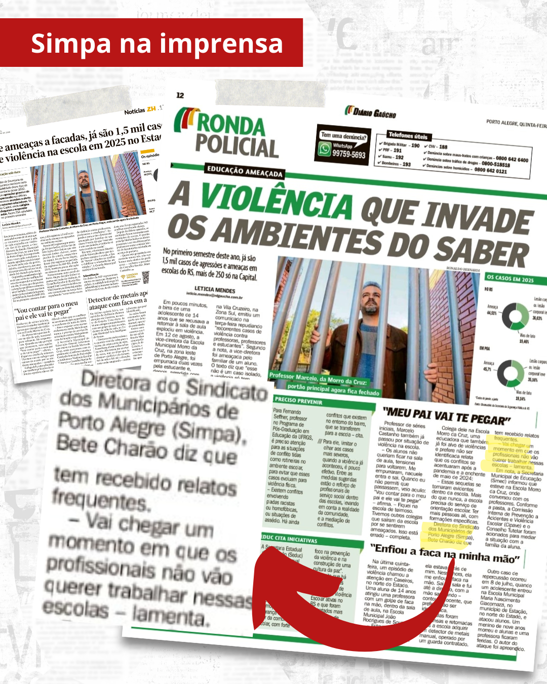 O Simpa ganhou destaque na imprensa gaúcha ao cobrar medidas urgentes para enfrentar a crescente violência nas escolas municipais de Porto Alegre. O tema repercutiu em veículos como SBT, Zero Hora, Diário Gaúcho, Record e Correio do Povo, que abordaram os casos de agressões e ameaças em instituições de ensino da Capital. A cobertura evidenciou […]