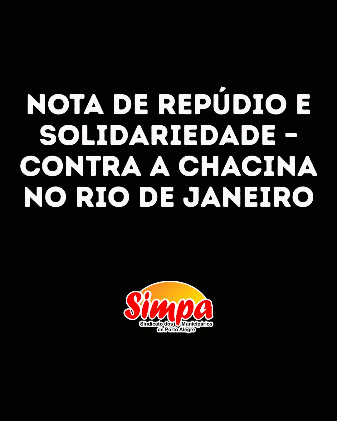 O Sindicato dos Municipários de Porto Alegre (Simpa) manifesta seu mais profundo repúdio à chacina ocorrida entre os dias 28 e 29 de outubro de 2025 nos Complexos da Penha e do Alemão, no Rio de Janeiro. A chacina já é considerada a maior operação policial letal da história do país, resultando em mais de […]