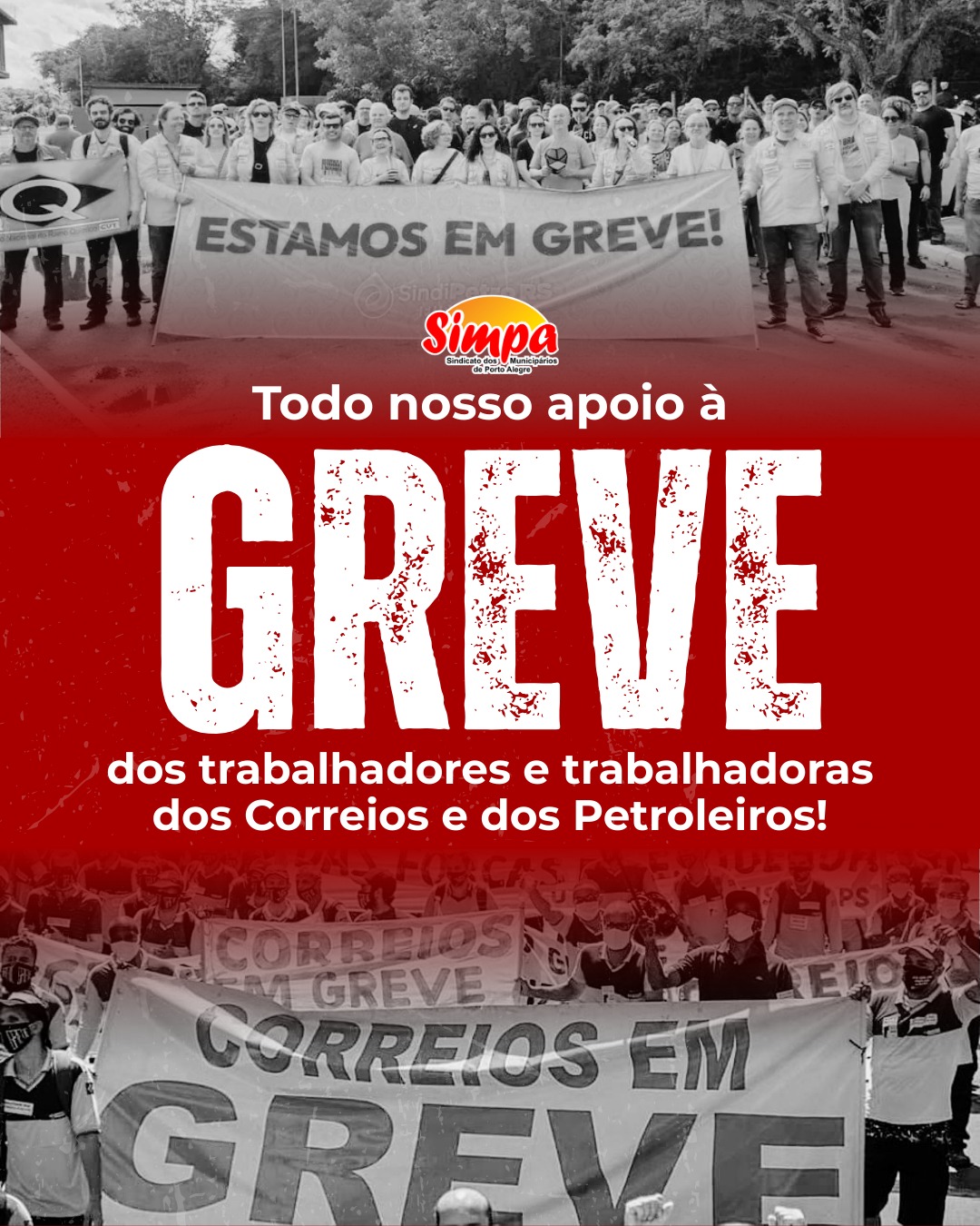 O Sindicato dos Municipários de Porto Alegre (SIMPA) manifesta apoio e solidariedade aos trabalhadores e trabalhadoras dos Correios e da Petrobras, que estão em greve em defesa de seus direitos e contra o desmonte e o sucateamento de empresas públicas estratégicas para o país. As paralisações são motivadas pela falta de avanços nas negociações dos […]