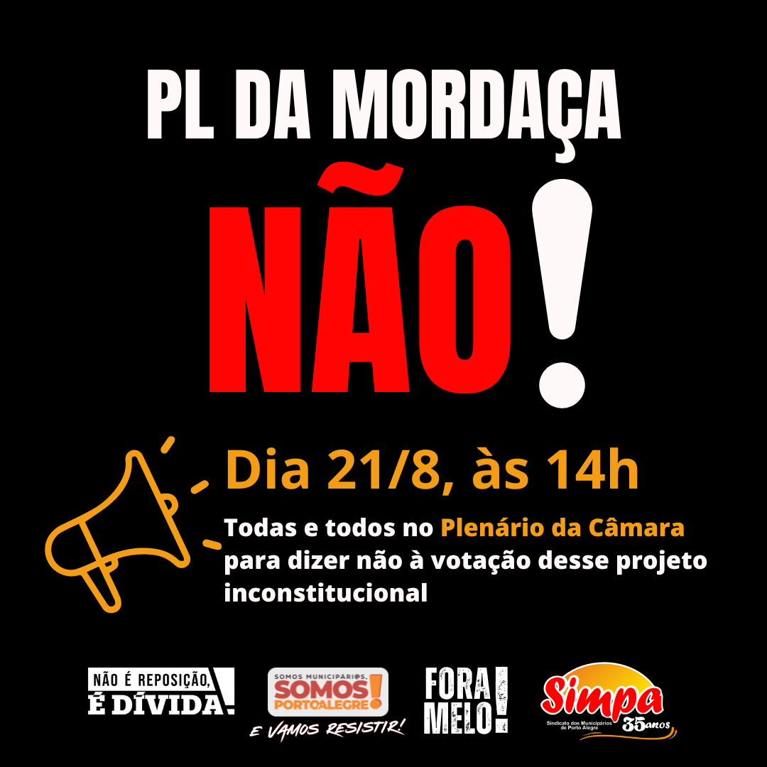 O Sindicato dos Municipários de Porto Alegre (Simpa) informa que na próxima segunda-feira (26/8) seguirá com a mobilização contra a votação do “PL da Mordaça”, que não foi a votação. O projeto foi resgatado pelos vereadores da base do prefeito Sebastião Melo e que, além de inconstitucional, afronta a liberdade de cátedra e tem como […]