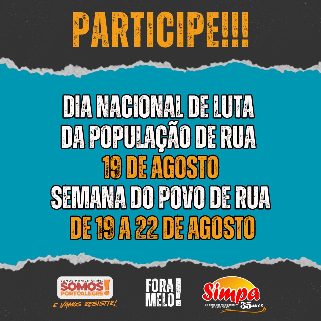 ⚠️ CATEGORIA MUNICIPÁRIA, PARTICIPE! 13/8 [terça-feira], às 10 horas, na SMAP (Siqueira Campos, 1300) Nessa terça-feira (13/8), o Simpa terá reunião com representantes do Governo Sebastião Melo, e convoca a categoria para uma VIGÍLIA com o objetivo de pressionar o governo para retomar as negociações da data-base 2024 e a honrar os compromissos assumidos […]
