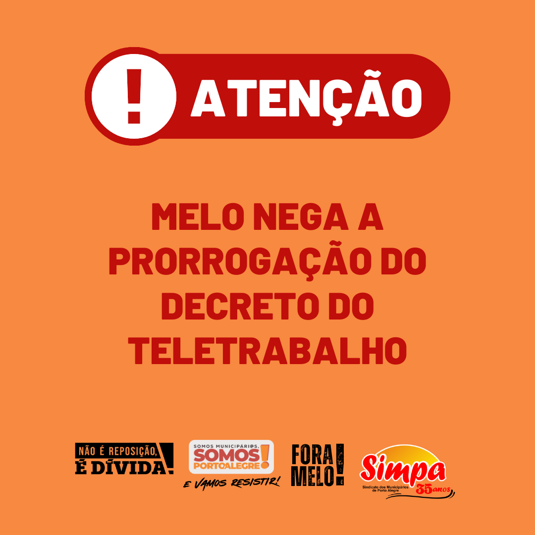 Após o Sindicato dos Municipais de Porto Alegre (Simpa) ter encaminhado ofício ao Gabinete do Prefeito reivindicando a prorrogação do prazo de vigência do Decreto 22.773, que institui o teletrabalho e a suspensão do registro da efetividade das servidoras e servidores para até o final do mês de agosto, a resposta do prefeito, Sebastião Melo, […]