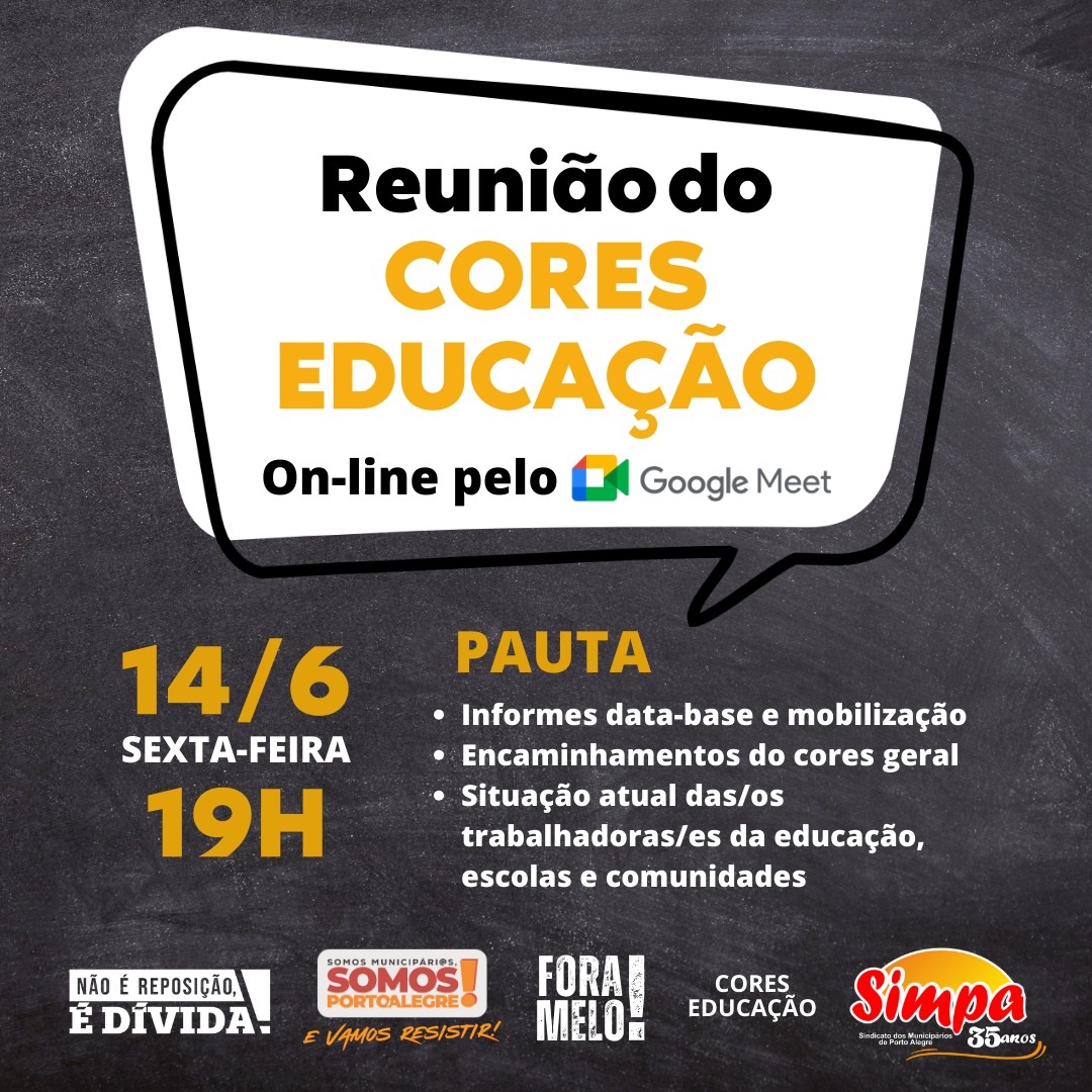 ⬇️ Dia 14/6 [sexta-feira] – 19h – On-line pelo Google Meet (o link será distribuído no dia, nos grupos WhatsApp) A discussão nos locais de trabalho é parte da luta e mobilização. Organizar e trazer as demandas das escolas é fundamental para o fortalecimento e articulação das nossas pautas! ⬇️ PAUTA: ▪️ Informes data-base e […]