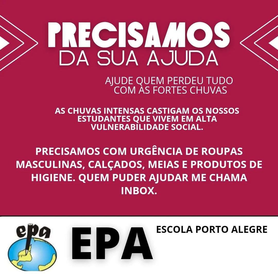 O Sindicato dos Municipários de Porto Alegre (Simpa) somou força à iniciativa dos professores da Escola Municipal de Ensino Fundamental Porto Alegre (EPA). Diante da situação de calamidade devido às chuvas que atingem todo o Estado, com a rápida elevação do nível das águas do Guaíba, os professores da EPA estão arrecadando roupas e materiais […]