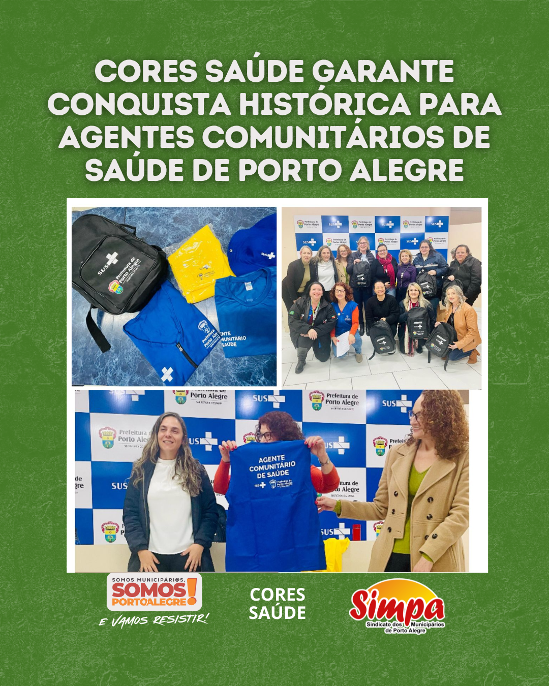 O CORES SAÚDE, junto ao SIMPA, celebrou nesta quinta-feira (07/08) uma importante vitória para a categoria: a entrega simbólica dos kits de uniforme para os Agentes Comunitários de Saúde (ACSs) de Porto Alegre. A cerimônia ocorreu no auditório da Secretaria Municipal de Saúde (SMS) e marcou a concretização de uma demanda antiga e permanente, defendida […]