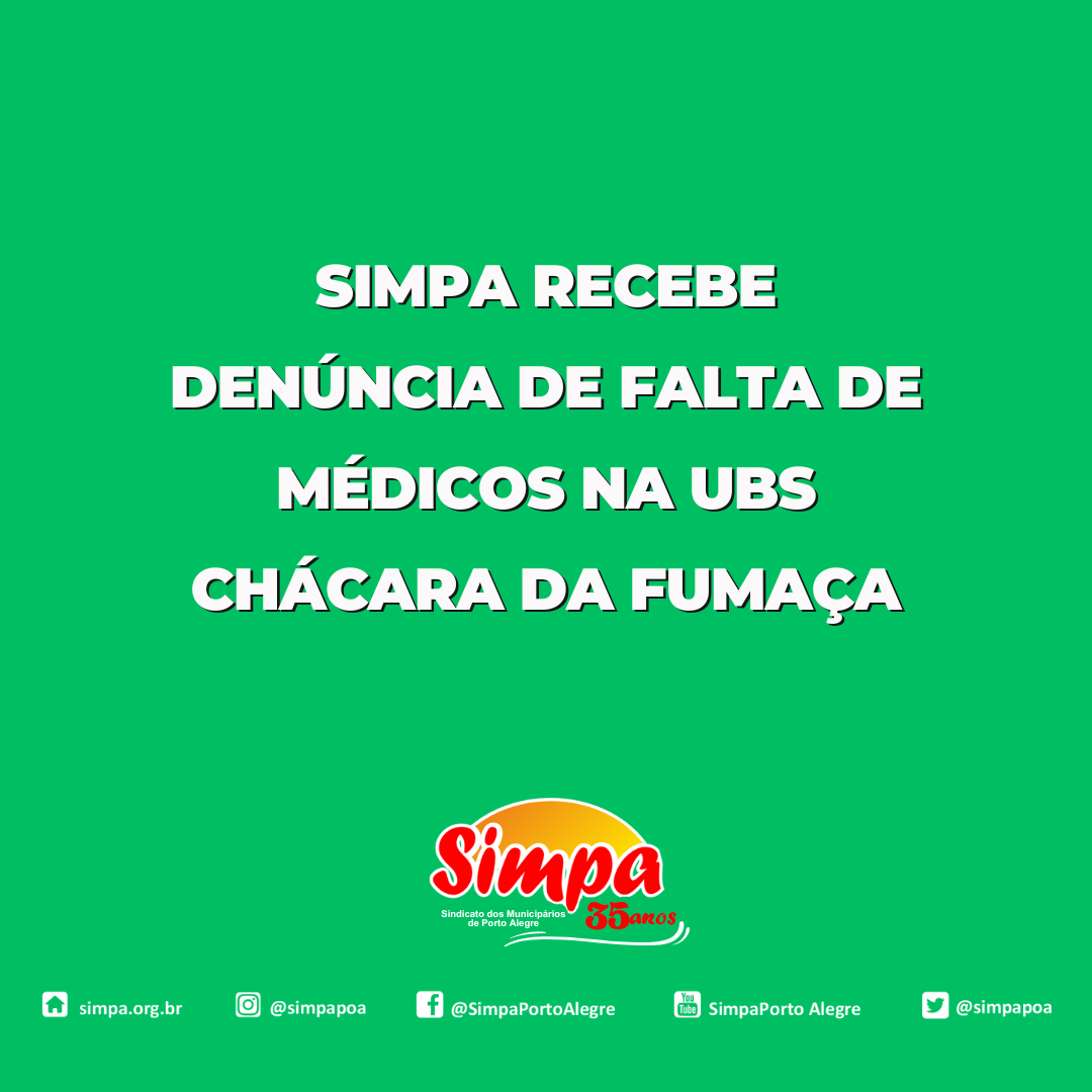 O Sindicato dos Municipários de Porto Alegre (Simpa) recebeu denúncia de que faltam médicos para prestar atendimento aos pacientes na Unidade Básica de Saúde (UBS) Chácara da Fumaça. De acordo com moradores da região, já faz mais de 20 dias que o problema vem ocorrendo. No dia 5 de março, a situação foi denunciada à […]