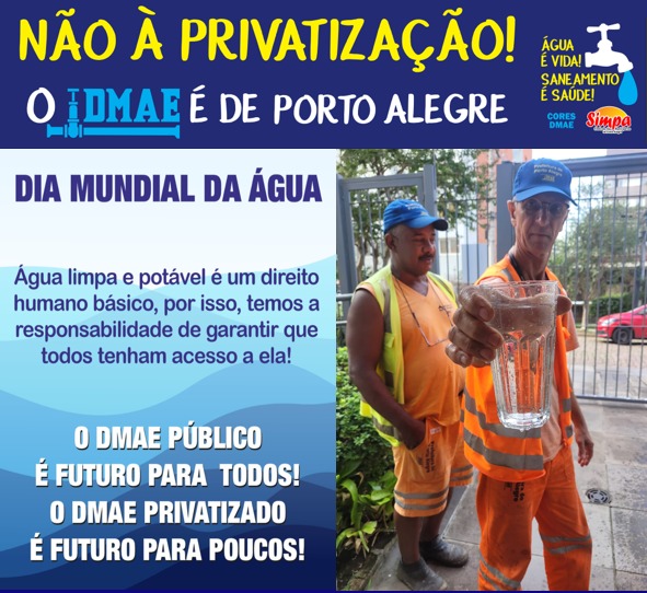 O SIMPA CORES-DMAE parabeniza a todos os servidores do DMAE pelo cuidado com a nossa água e conscientiza que cada um de nós tem um papel muito importante! Confira alguns cuidados que precisamos ter diariamente: Utilize sabão e detergente biodegradáveis ️Nunca jogue óleo utilizado nas pias ️Jogue o lixo no lixo Diga não ao […]