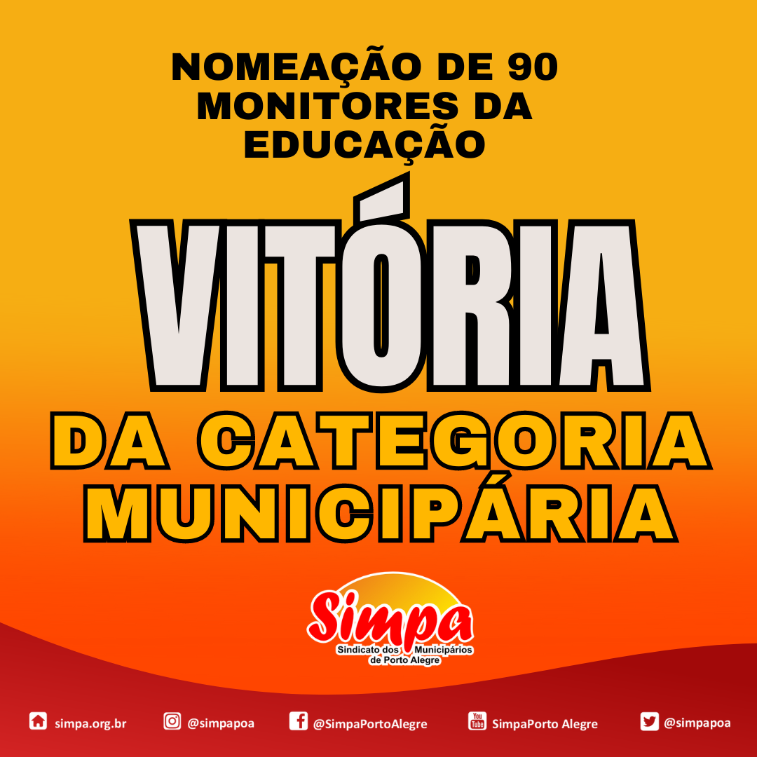 A pressão que o Sindicato dos Municipários de Porto Alegre (Simpa) e a Comissão de Aprovados em Concursos da Prefeitura vem realizando junto ao Governo Melo está dando resultado. O Diário Oficial de Porto Alegre publicou a nomeação de 90 monitores para a Secretaria Municipal de Educação (Smed). A nomeação dos monitores é mais uma […]