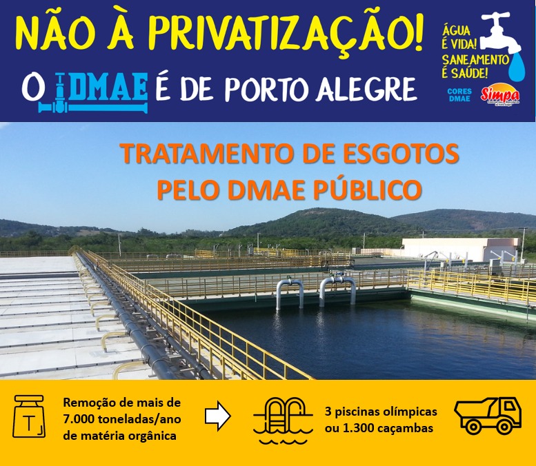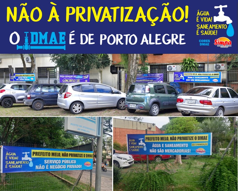 Dando continuidade na luta em defesa do DMAE público, foram instaladas 20 novas faixas nas principais unidades do Departamento com objetivo de alertar a população de Porto Alegre. Nas faixas estão escritas as frases da campanha de mobilização pela não privatização do DMAE: “PREFEITO MELO, NÃO PRIVATIZE O DMAE” “ÁGUA E SANEAMENTO NÃO SÃO […]