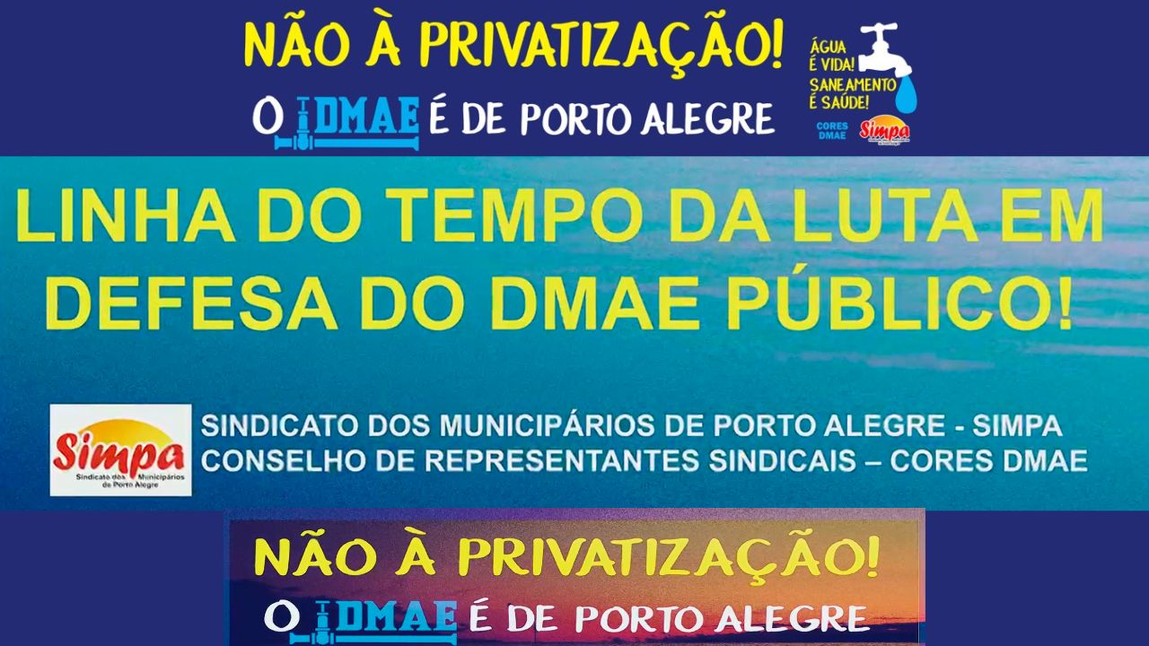 O SIMPA e o Cores DMAE lançam o 3º vídeo da segunda série em defesa do DMAE público. Neste final de 2023 estamos completando 7 anos de resistência, mobilização e luta contra a privatização do DMAE. Neste vídeo traçamos uma linha do tempo através de imagens de nossas lutas e atividades em defesa do DMAE […]